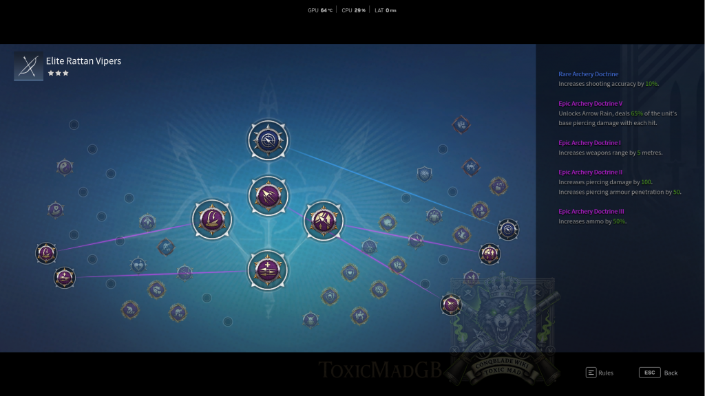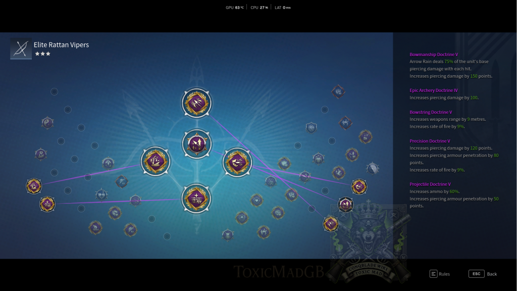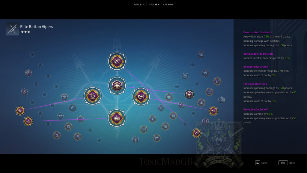 Deploy Rattan Vipers to harass enemy lines and siege equipment. Open engagements by poisoning clusters, then reposition to maximize crowd control. Prioritize doctrines that boost movement speed, poison duration, and ammo supply. Keep them behind frontlines and avoid direct melees to exploit their disruption role.