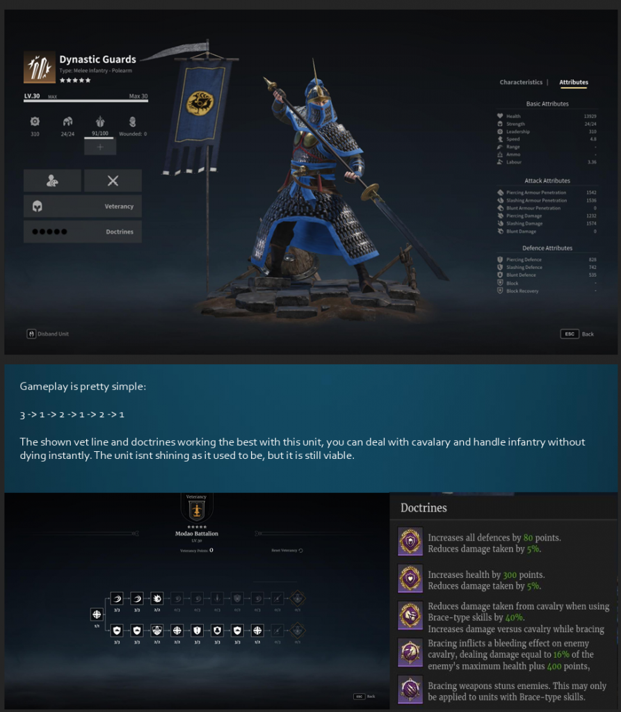Unit Overview Core Traits & Abilities 🎯 Formations & Unit Orders Formation Description Dispersed Looser formation to reduce damage from enemy ranged fire. Shield Wall Tightly packed—prioritizes directional defense with shields first. Unit Orders: Veterancy Paths & Doctrines Top Path Highlights: Bottom Path Highlights: Recommended Doctrines: **Replace Ammo with 40% Accuracy if doesnt feel right…