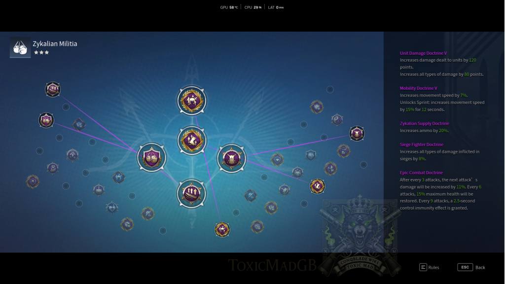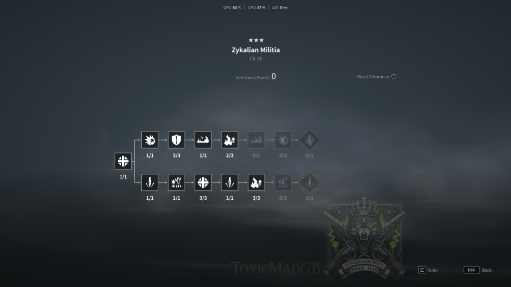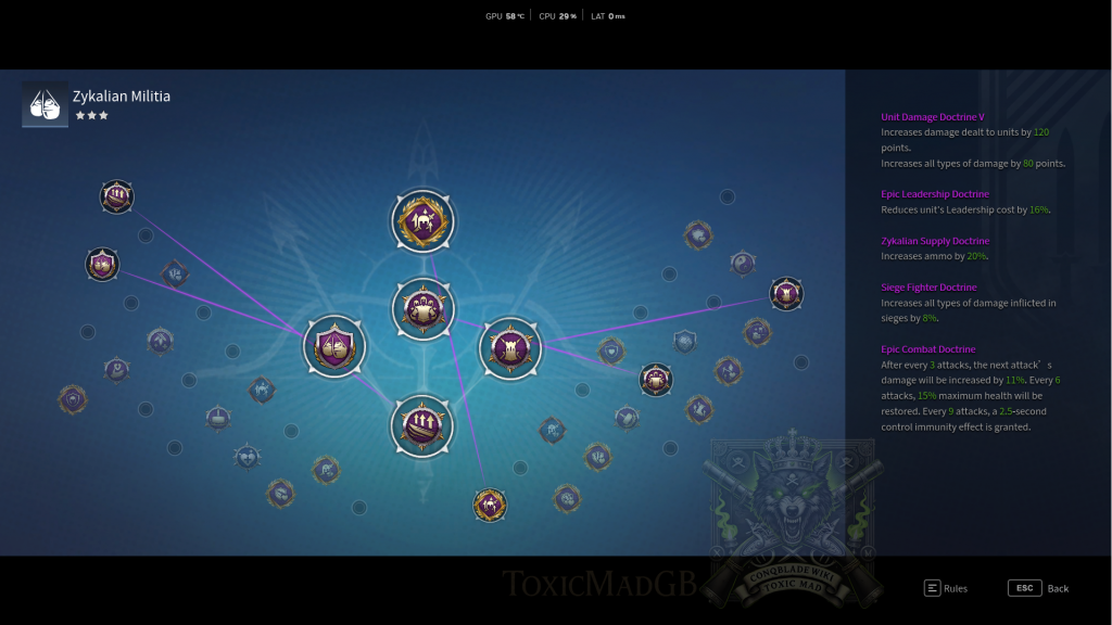 Pair them with doctrines boosting burning damage and blunt damage to maximize effectiveness. The Zykalian Militia thrives as a tactical support unit, best used for sustained area denial rather than direct melee engagement.